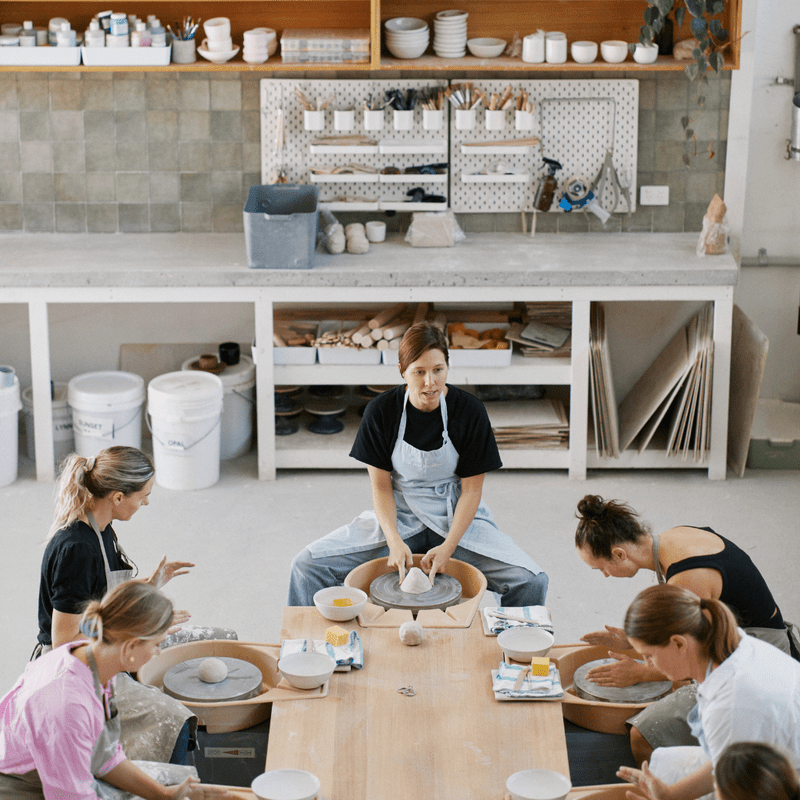 You get six hours with our team, three full hours on the wheel, a deep dive into trimming, and a glazing demo that finally makes glazing feel… understandable. You make the pieces, we dry, glaze, and fire them. You come back in about four weeks to collect your new babies. Easy.